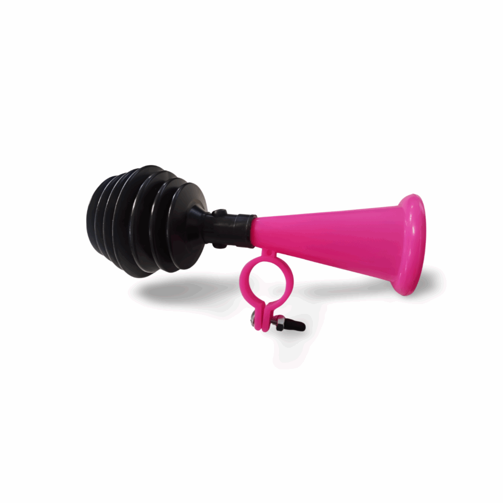 Dětská plastová houkačka – je veselý doplněk na kolo, koloběžku nebo odrážedlo, který udělá jízdu pro děti zábavnější a bezpečnější. Vyrobena z lehkého plastu a opatřena univerzálním držákem pro řídítka, snadno se připevní a zvládnou to i malé děti. Po stisknutí vydává jasný a radostný pískavý zvuk, který upozorní ostatní účastníky provozu a zároveň potěší samotné dítě. Houkačka je praktická na každodenní použití — ideální na výlety, do školky nebo jen tak pro radost. Díky růžové barvě a dětskému designu působí přívětivě a hravě.